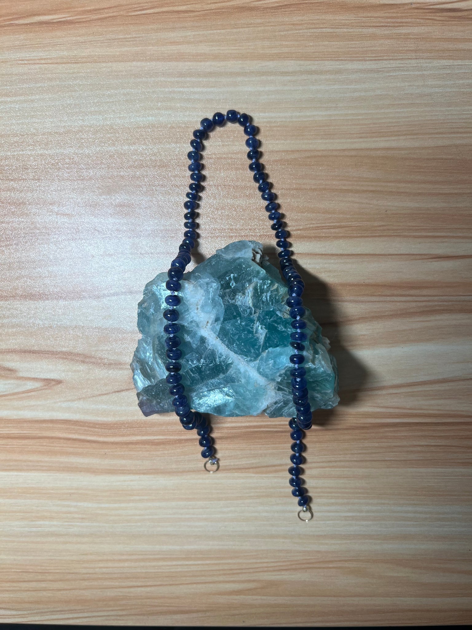 This beautiful necklace is made with 14k open loops and is 18 inches in length. The gemstones are high quality sapphires.